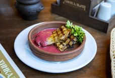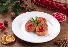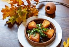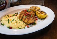 150/160/60 г • Филе индейки, масло растительное, сванская соль, ташмиджаби (картофель, масло сливочное, соль, сыр сулугуни), яблоко, уксус винный красный, зерна граната, петрушка, сумах)