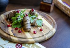 150 г • Баклажан, ореховая паста (орех грецкий, соль, чеснок, перец Чили, уцхо-сунели, кинза, уксус винный красный), гранат, петрушка