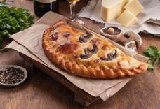 290 г • Закрытый хачарури: тесто (мука, дрожжи, соль, сахар, масло растительное, молоко), шампиньоны, лук репчатый, масло сливочное, сыр сулугуни, чеснок, перец черный молотый, яйца, укроп