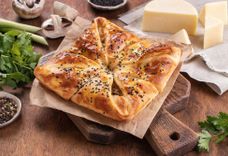300 г • Закрытый хачапури с начинкой из копченого сыра, картофеля и розмарина