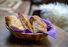 185 г • Када (мука, масло сливочное, соль, сахар, мацони, яйцо, ванилин, лимон), чурчхелла, гозинаки, варенье из кизила)