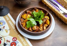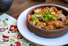 250/2 г • Говядина, рис, лук репчатый, масло растительное, томатная паста, соль, кориандр, перец Чили, уцхо-сунели, хмели-сунели, чеснок, кинза, пертушка