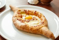 300 г • Закрытый хачарури: тесто (мука, дрожжи, соль, сахар, масло растительное, молоко), сыр сулугуни, яйцо, масло сливочное