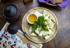250 г • Сыр сулугуни, сыр Фета, сыр копченый, мед, грецкий орех, зерна граната