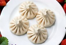 245 г / 4 шт. • тесто на хинкали, клубничная начинка (клубника с/м, сахар, ванилин, сыр Маскарпоне, лимон)